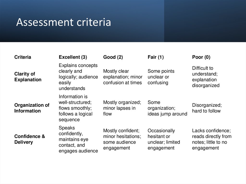 Assessment criteriaCriteria