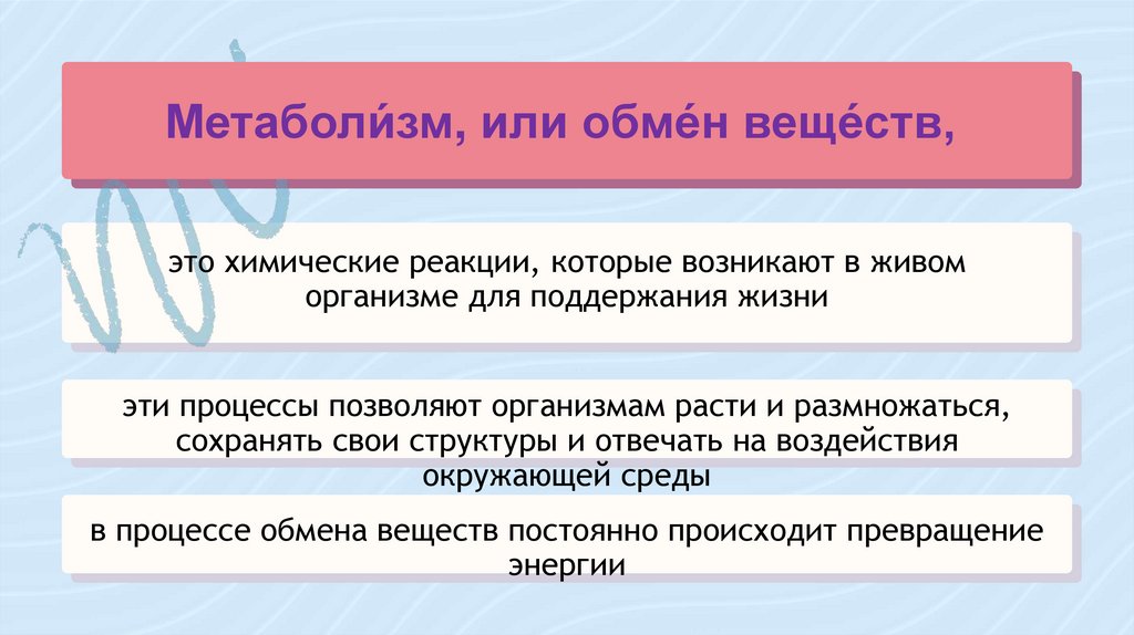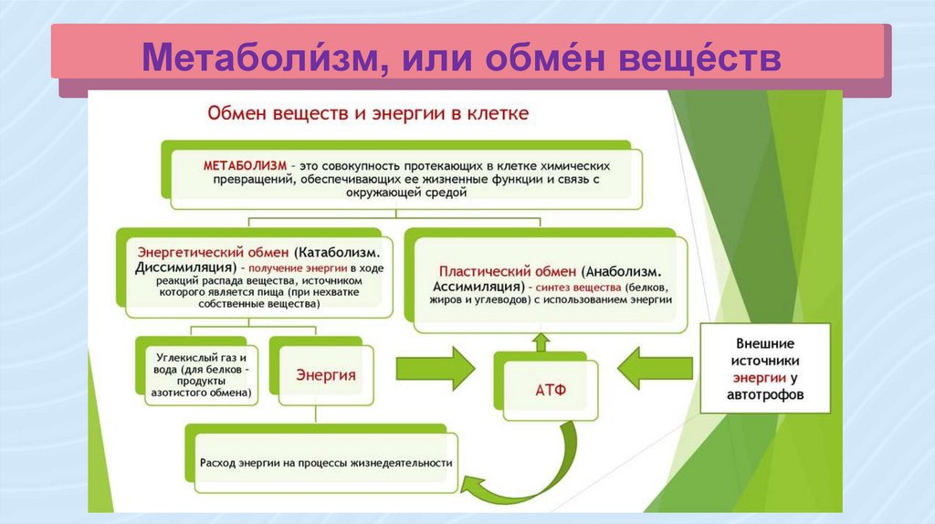 Метаболи́зм, или обме́н веще́ствДиссимиляция
