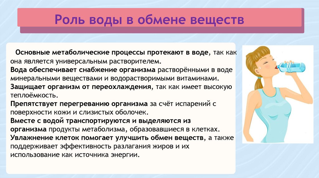 Вода обеспечивает снабжение организма растворёнными в воде