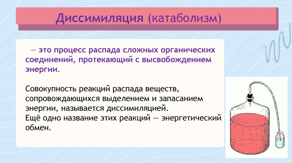 энергии, называется диссимиляцией.
