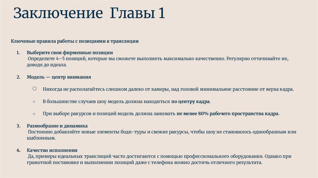 Заключение Главы 1Ключевые правила работы с позициями в трансляции