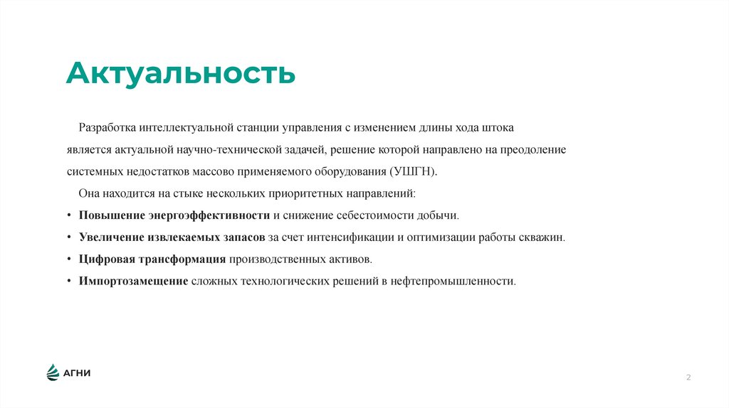 АктуальностьРазработка интеллектуальной станции управления с изменением длины хода штока