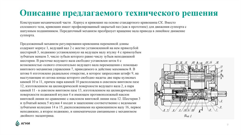 сплошного тела, кривошип имеет профилированный закрытый паз (как в прототипе) для движения суппорта с