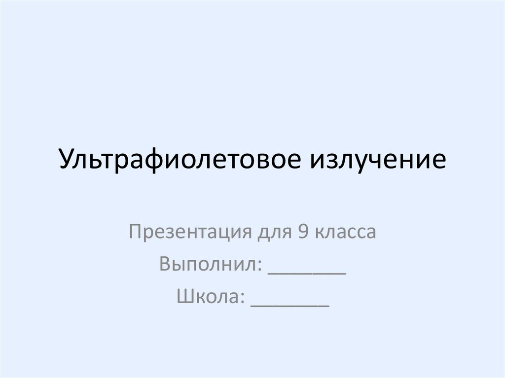 Ультрафиолетовое излучениеПрезентация для 9 класса
