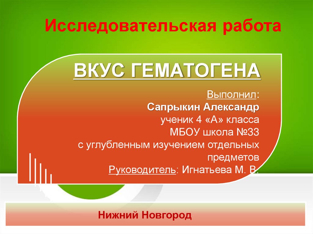 Исследовательская работаВКУС ГЕМАТОГЕНА