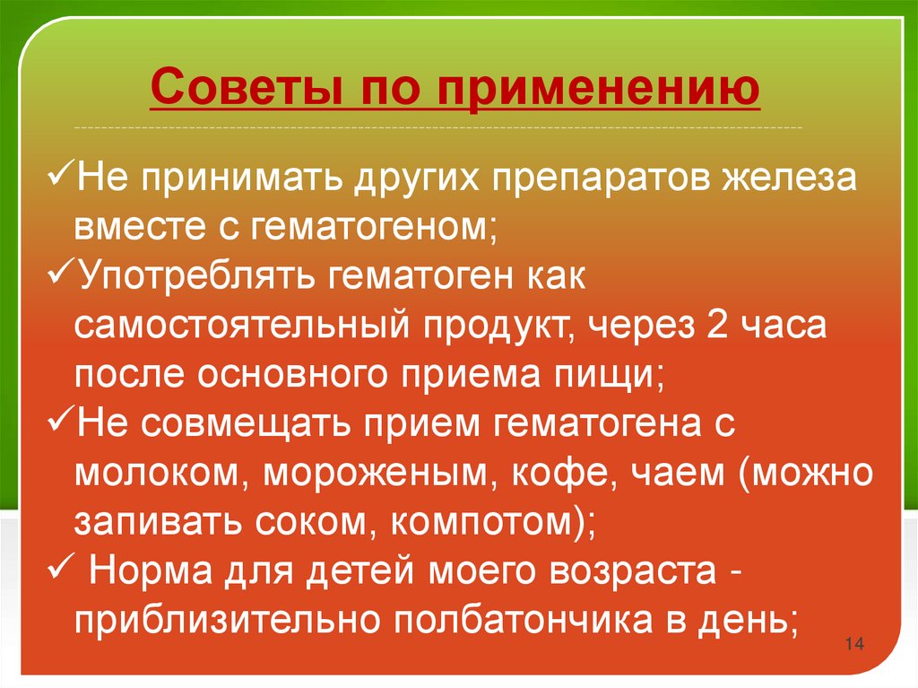 Не совмещать прием гематогена с