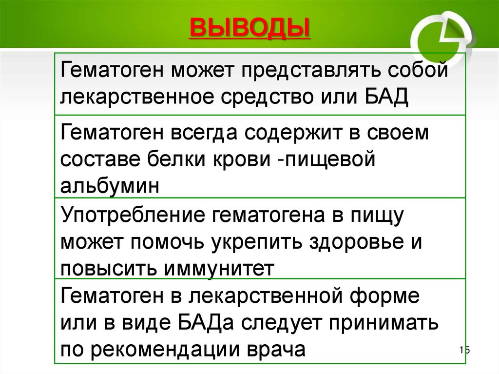 ВЫВОДЫГематоген может представлять собой