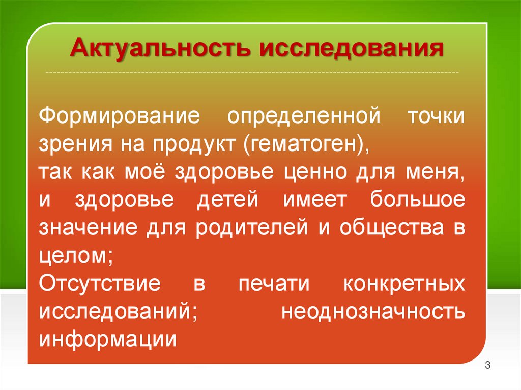 Актуальность исследованияФормирование определенной точки
