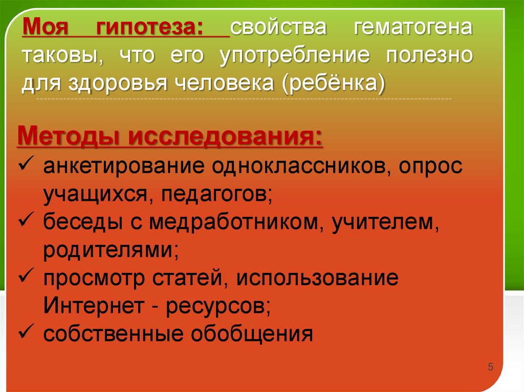 изучить влияние гематогена на организм