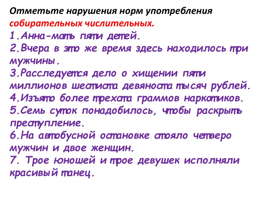 Отметьте нарушения норм употреблениясобирательных числительных.