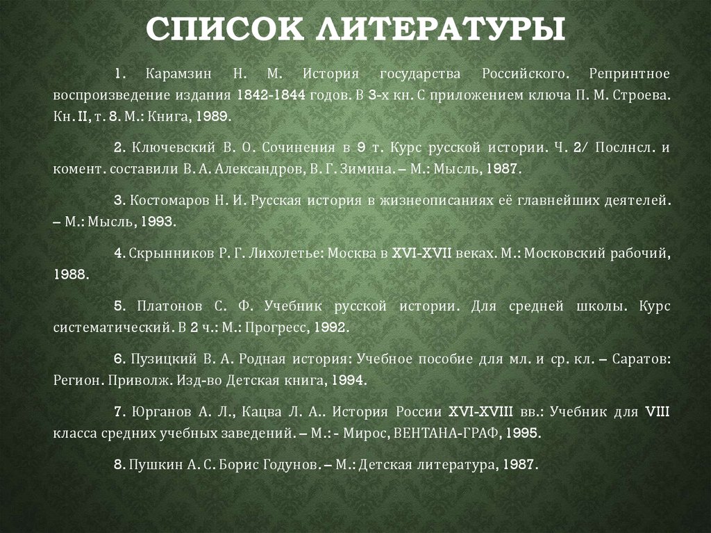 БОРИС ГОДУНОВ В ЛИТЕРАТУРЕ8.