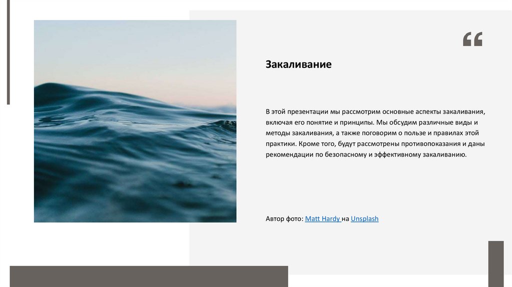 ЗакаливаниеВ этой презентации мы рассмотрим основные аспекты закаливания,