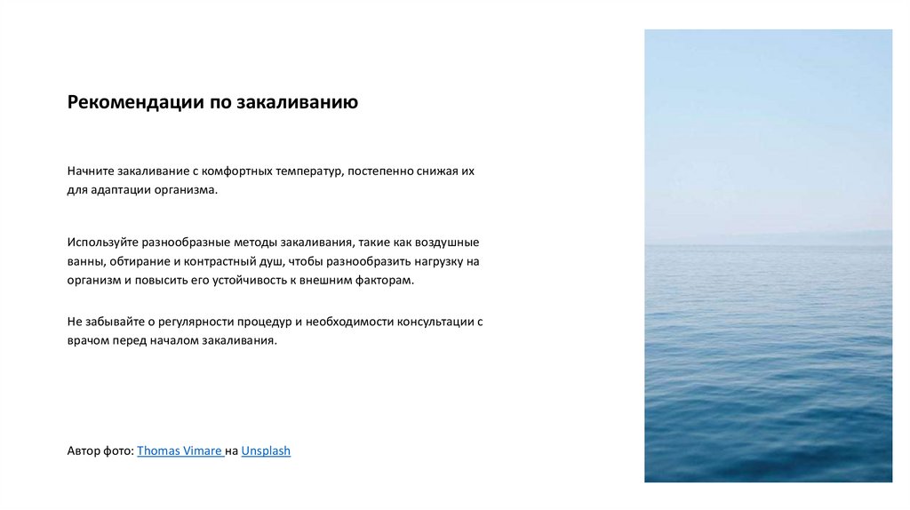 Рекомендации по закаливаниюНачните закаливание с комфортных температур, постепенно снижая их