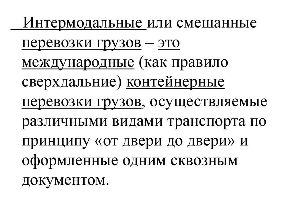 Интермодальные или смешанныеперевозки грузов – это