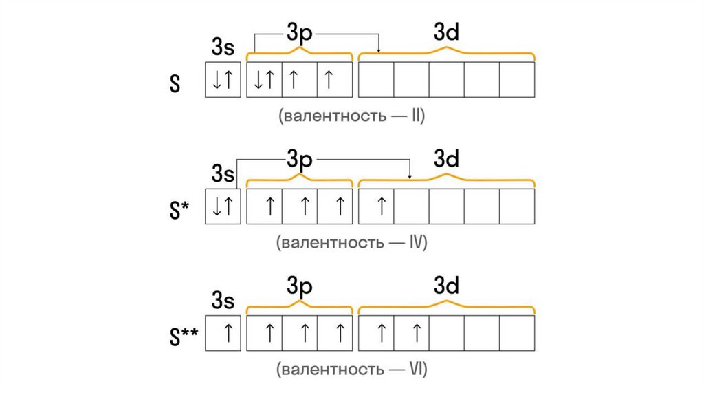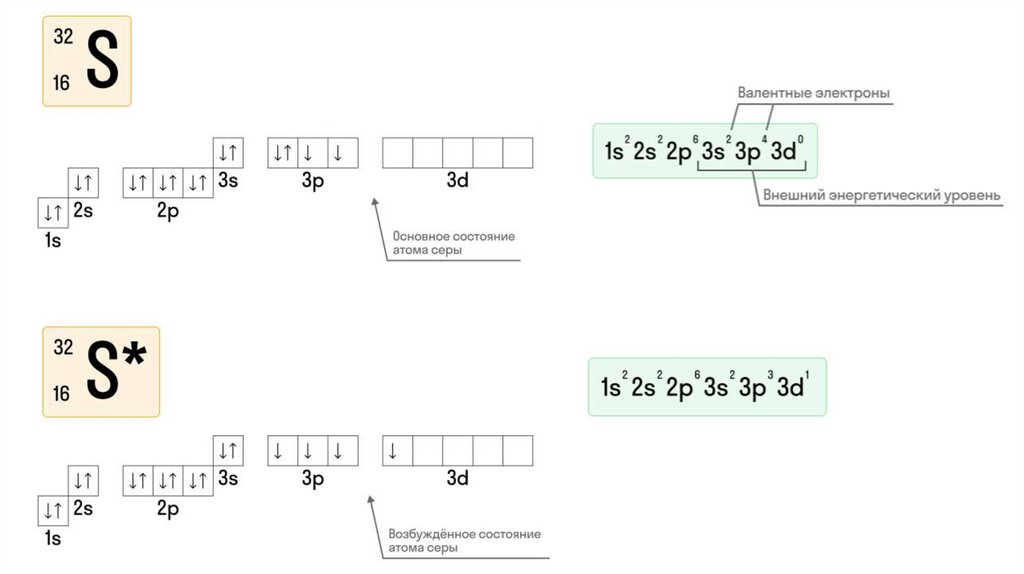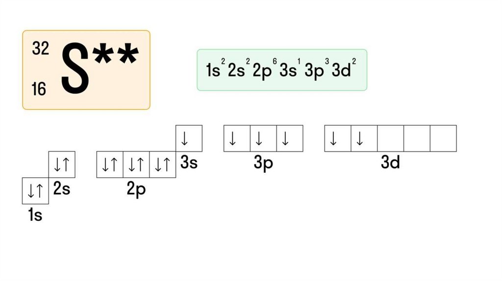 11. Электронная конфигурация атома серы (S)