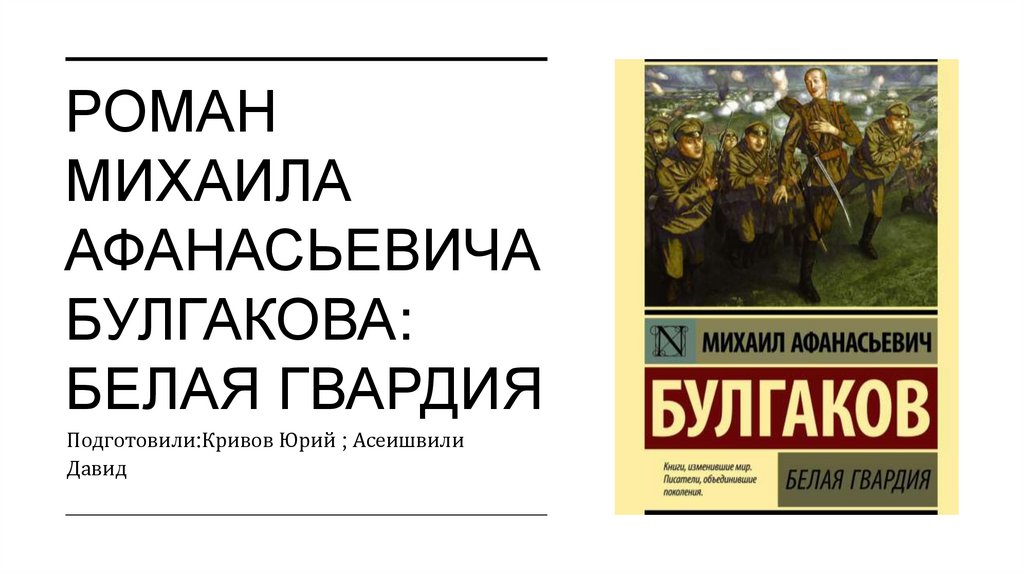 1. Роман Михаила Афанасьевича Булгакова: Белая гвардия