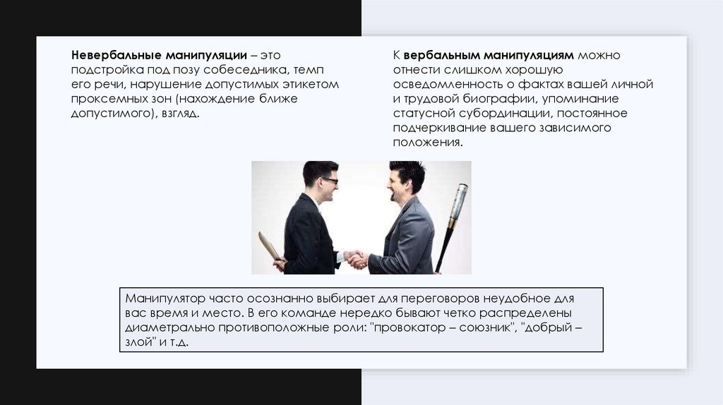 манипуляции могут проявляться как в вербальном,