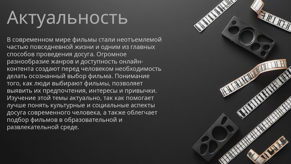 АктуальностьВ современном мире фильмы стали неотъемлемой