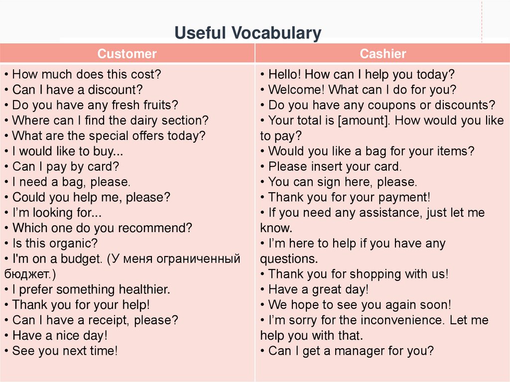 Useful VocabularyCustomer