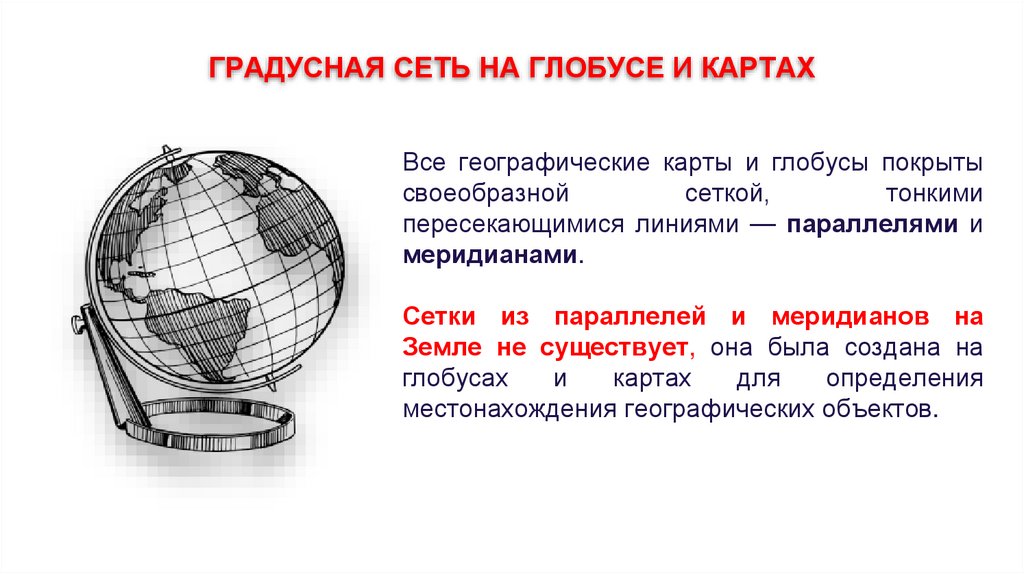 ГРАДУСНАЯ СЕТЬ НА ГЛОБУСЕ И КАРТАХВсе географические карты и глобусы покрыты