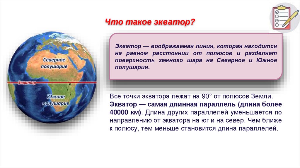 Экватор — самая длинная параллель (длина более