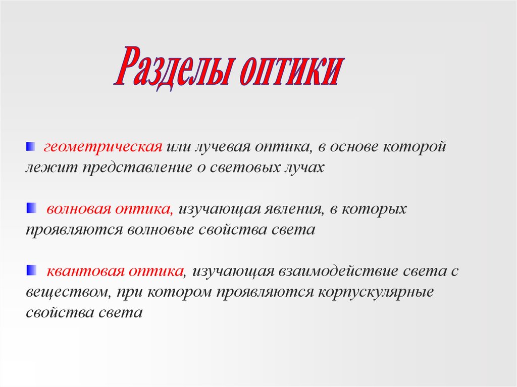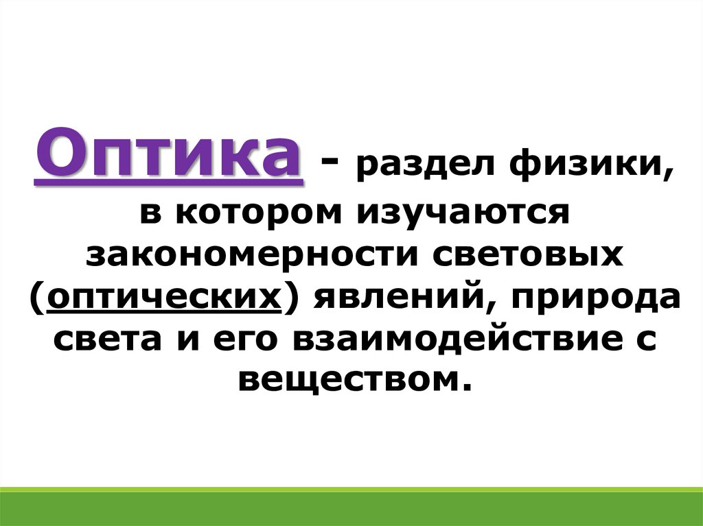 Оптика - раздел физики,в котором изучаются