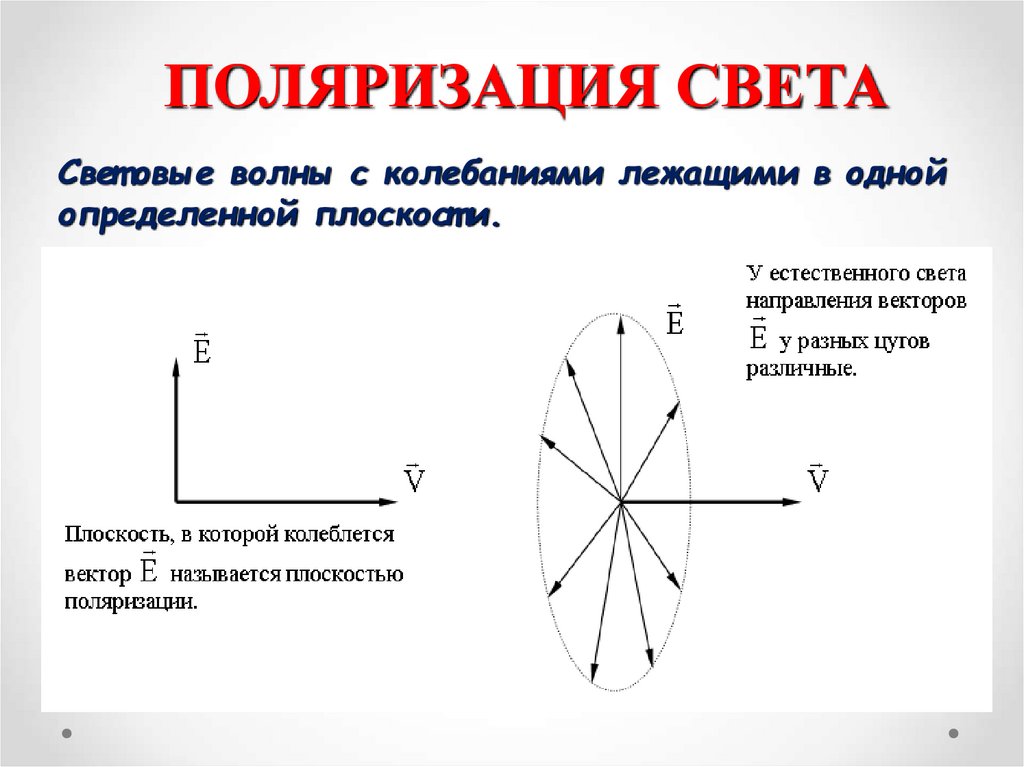 ПОЛЯРИЗАЦИЯ СВЕТАСвет овые волны с колебаниями лежащими в одной