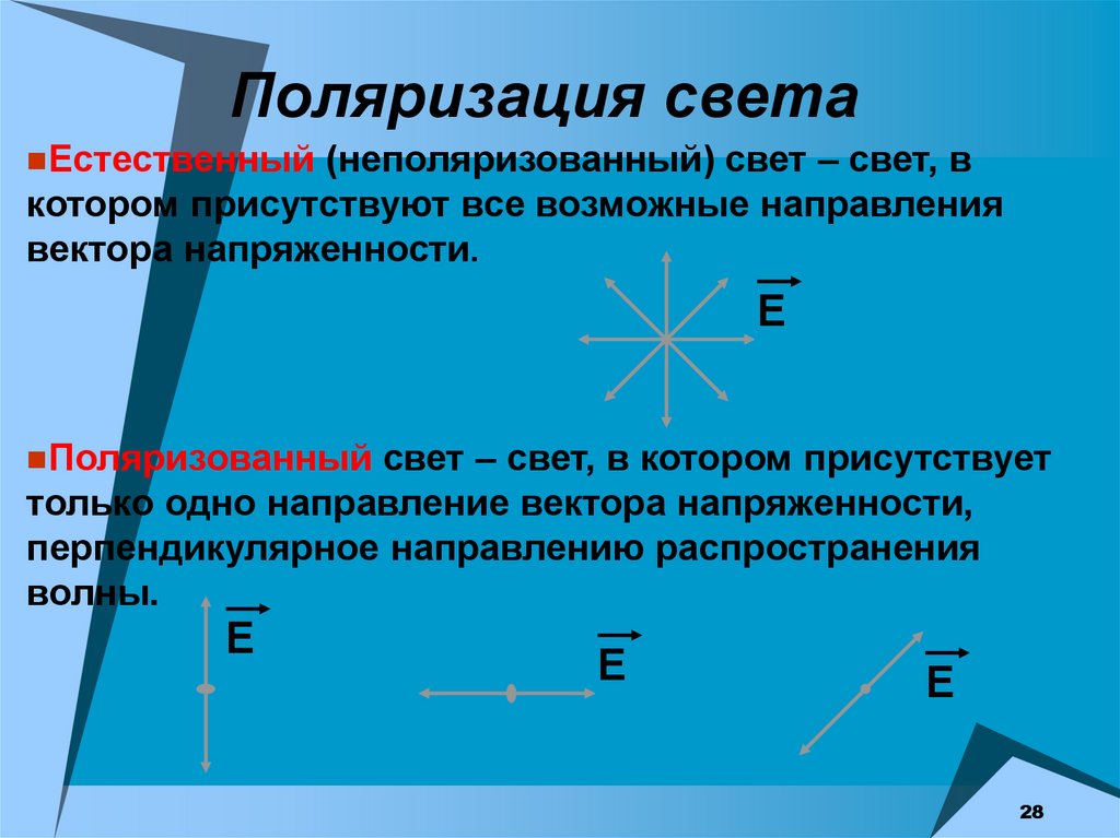 Поляризация светаЕстественный (неполяризованный) свет – свет, в