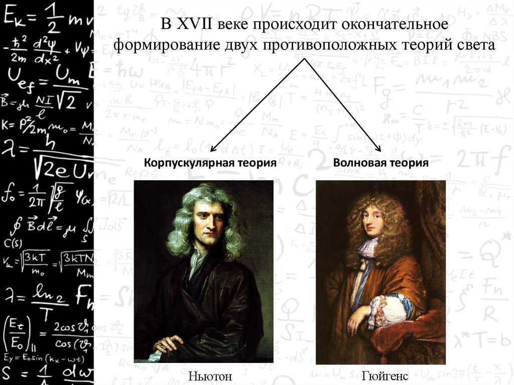 В XVII веке происходит окончательноеформирование двух противоположных теорий света