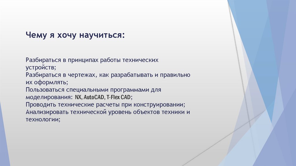 Чему я хочу научиться:Разбираться в принципах работы технических