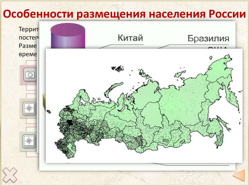 Особенности размещения населения РоссииТерритория любой страны заселяется и осваивается людьми