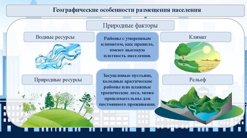 Географические особенности размещения населенияПриродные факторы