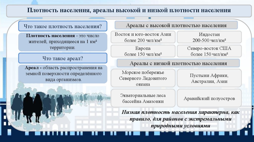 Плотность населения, ареалы высокой и низкой плотности населенияЧто такое плотность населения?
