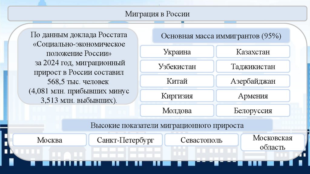 Миграция в РоссииПо данным доклада Росстата