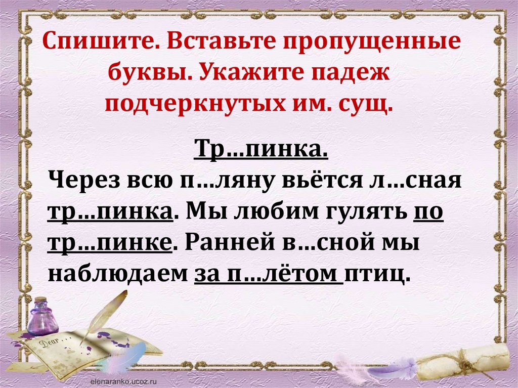 Спишите. Вставьте пропущенныебуквы. Укажите падеж