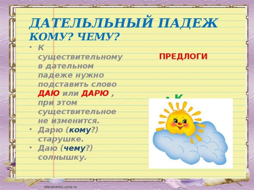 Презентация по русскому языку на тему_ Дательный падеж_3 класс
