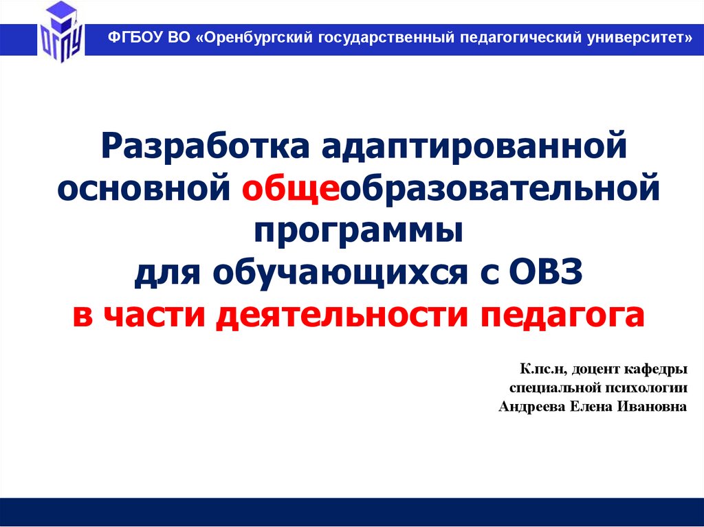 ФГБОУ ВО «Оренбургский государственный педагогический университет»Разработка адаптированной