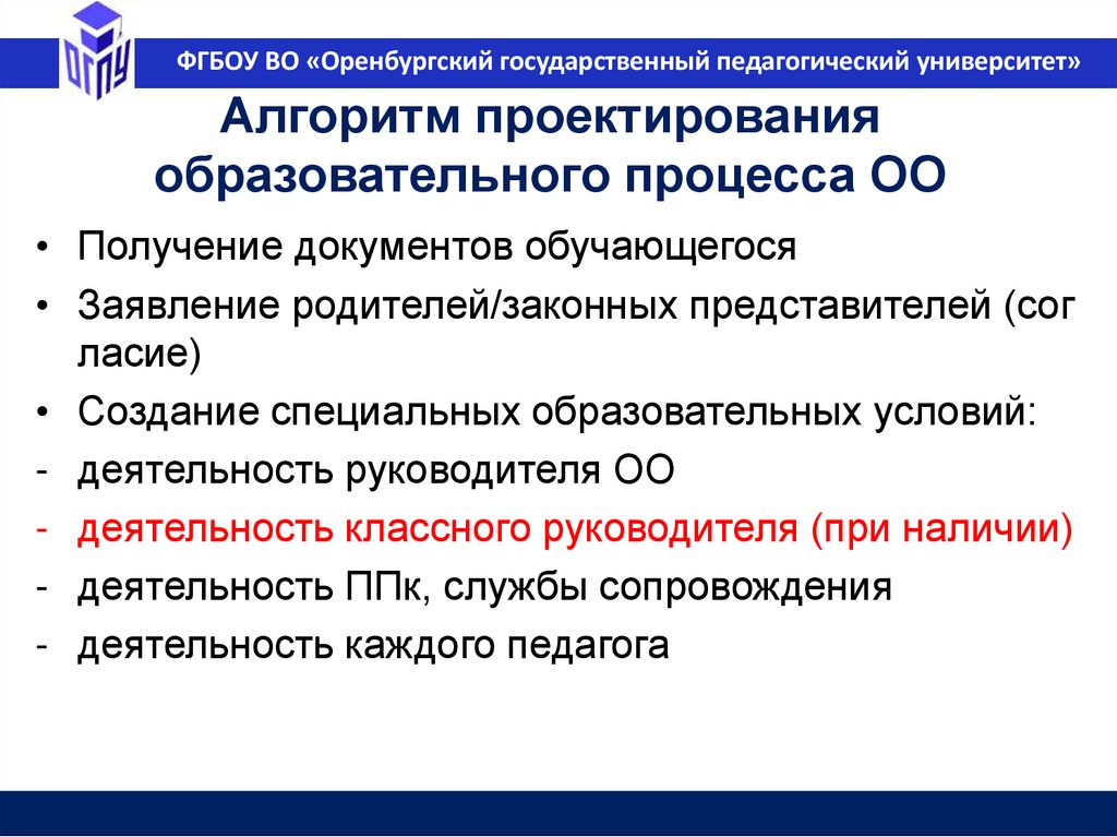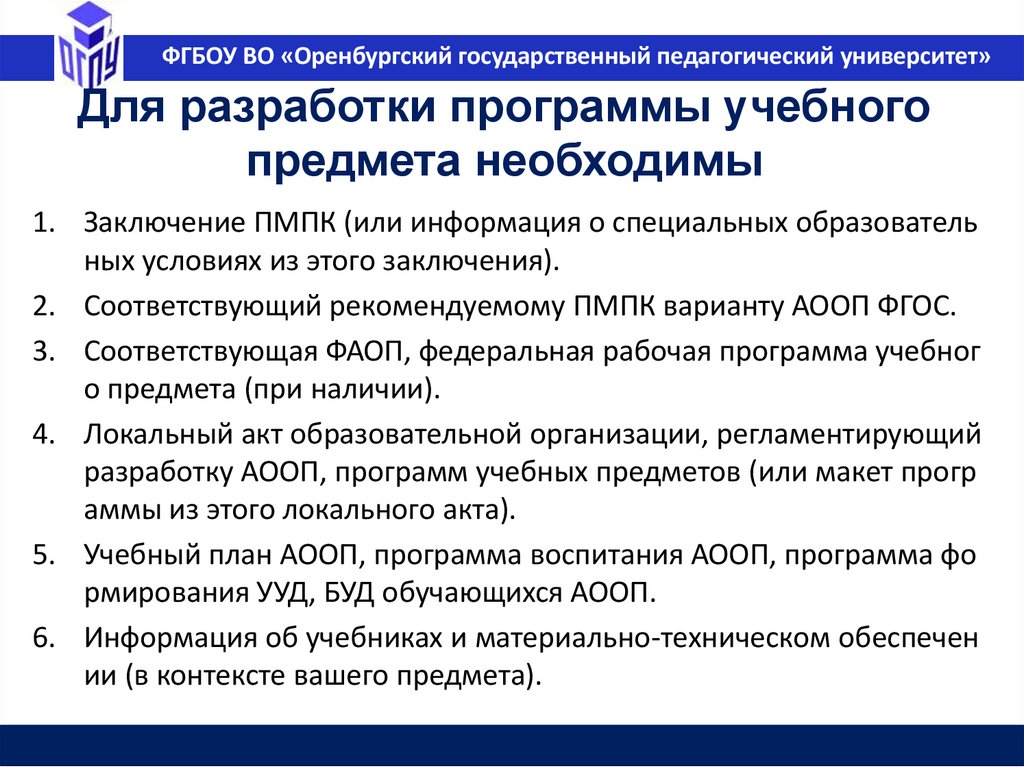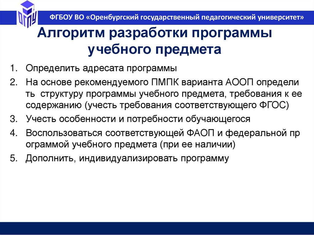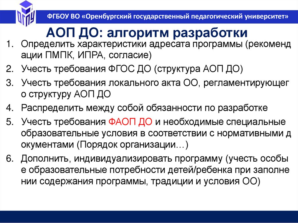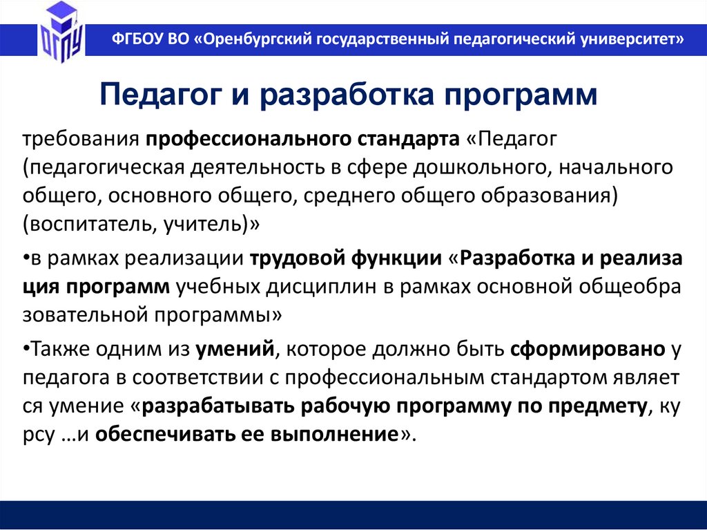 ФГБОУ ВО «Оренбургский государственный педагогический университет»Педагог и разработка программ