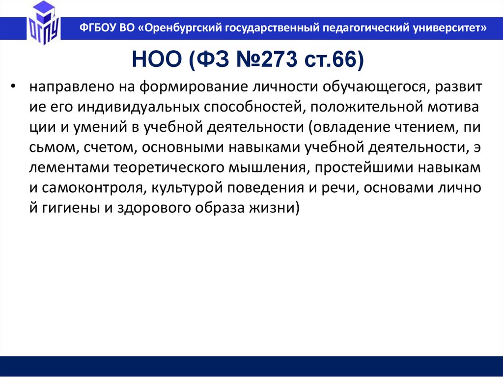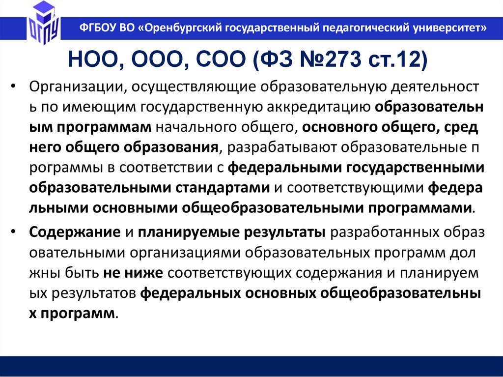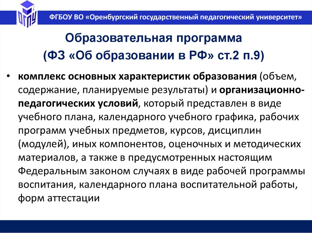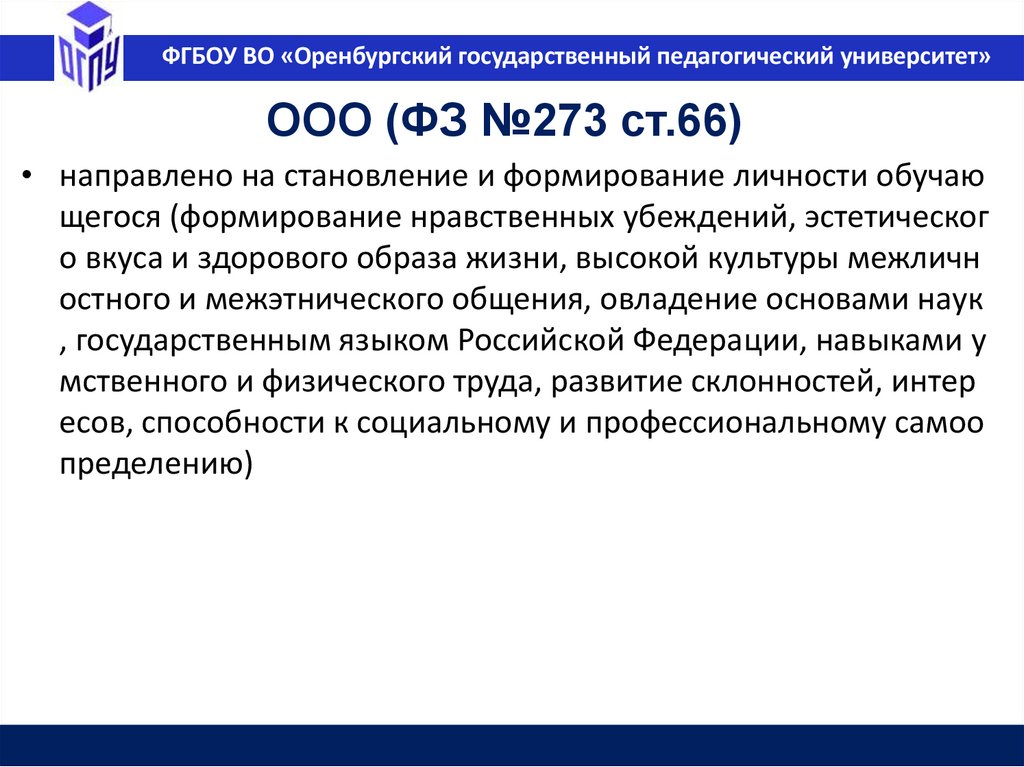 ФГБОУ ВО «Оренбургский государственный педагогический университет»Образование в РФ (ФЗ №273 ст.10, п.2)