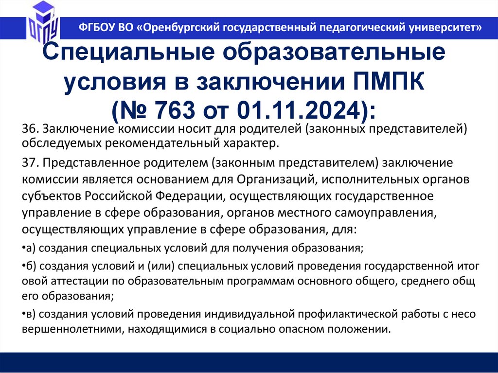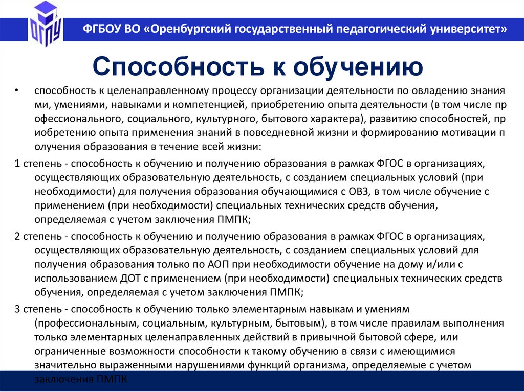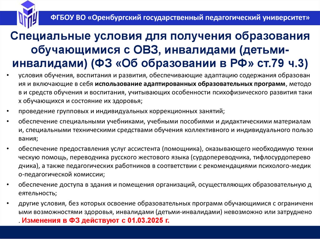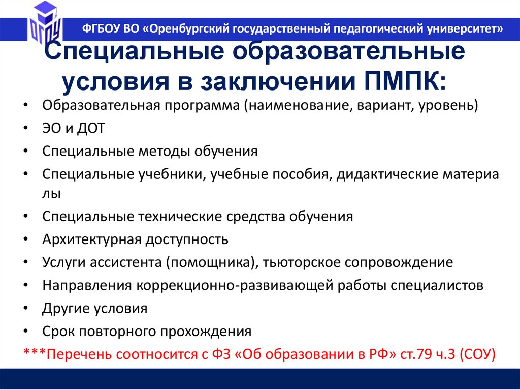 ФГБОУ ВО «Оренбургский государственный педагогический университет»Образование в РФ (ФЗ №273 ст.10, п.2)