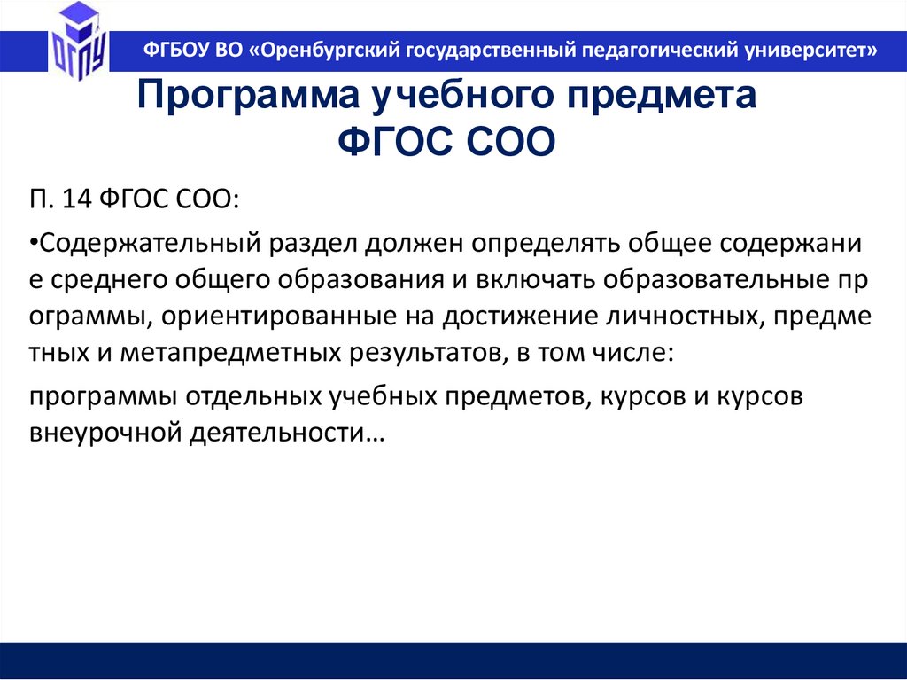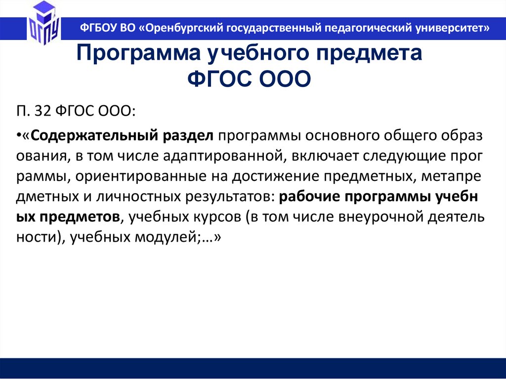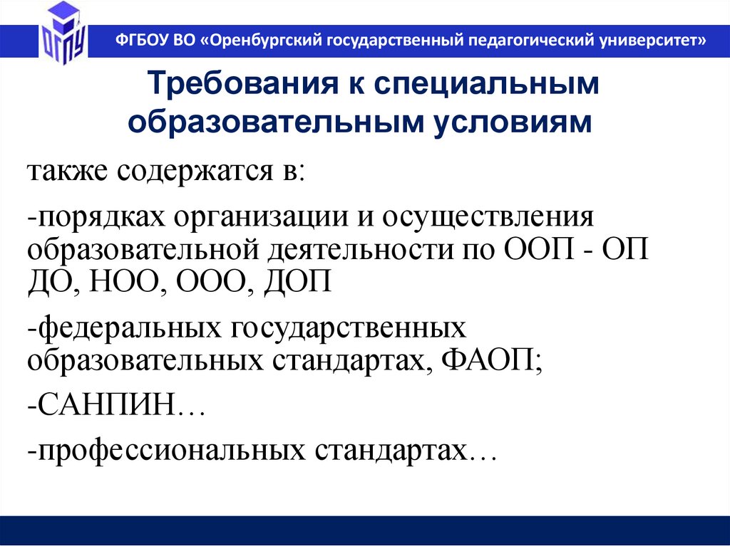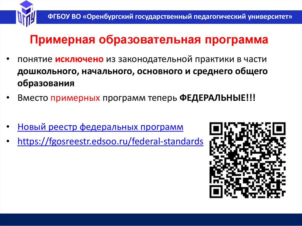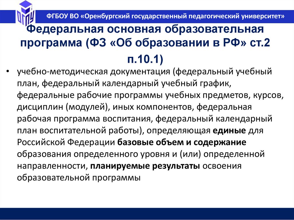 ФГБОУ ВО «Оренбургский государственный педагогический университет»Федеральная основная образовательная
