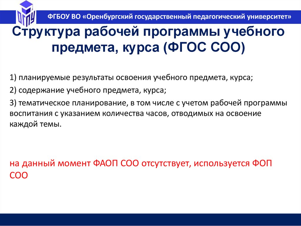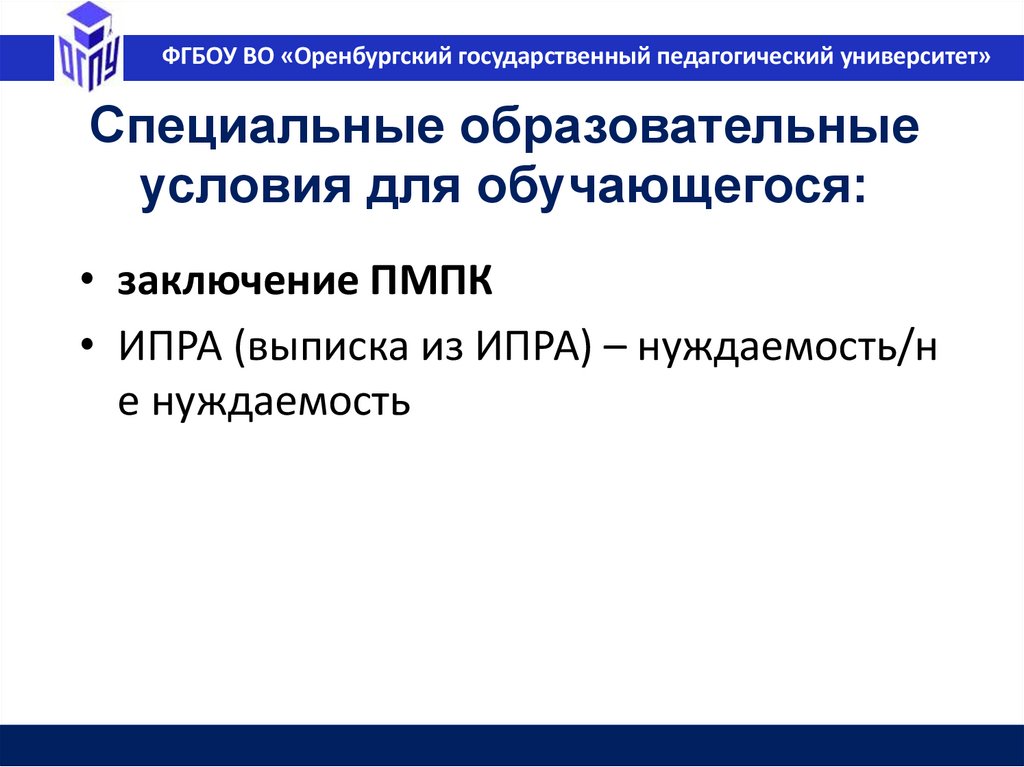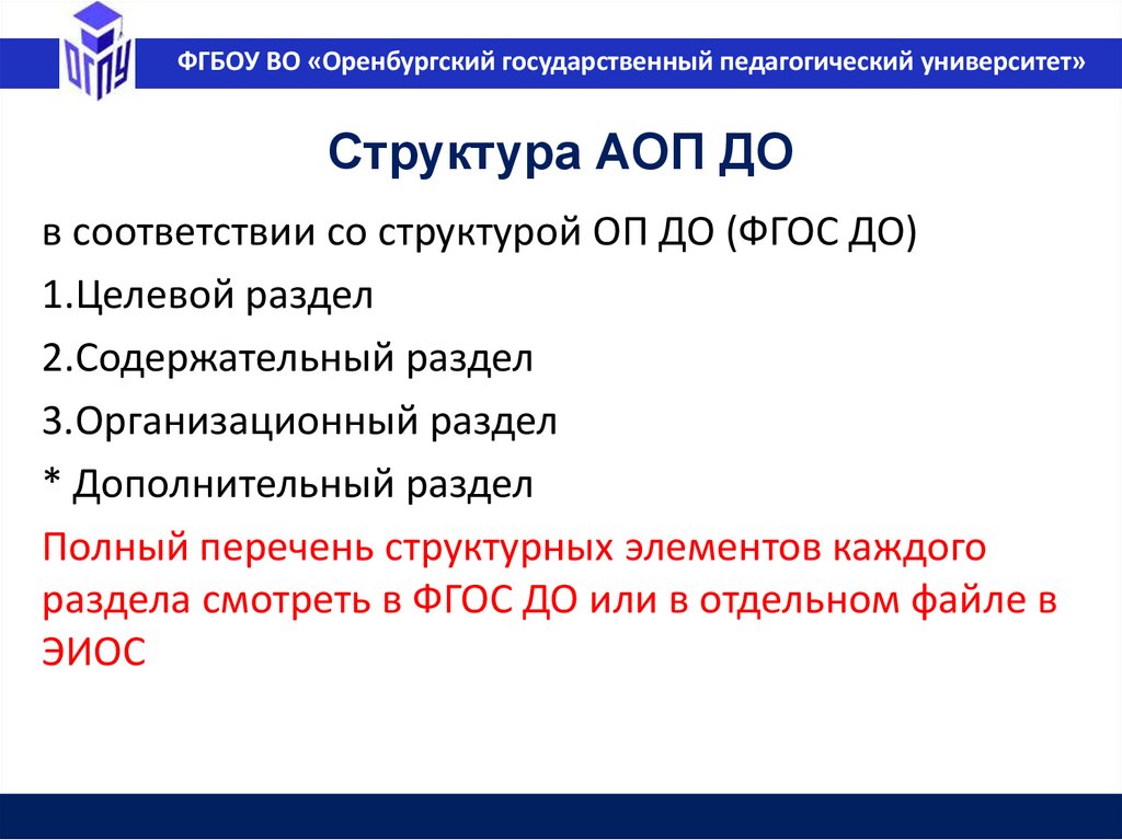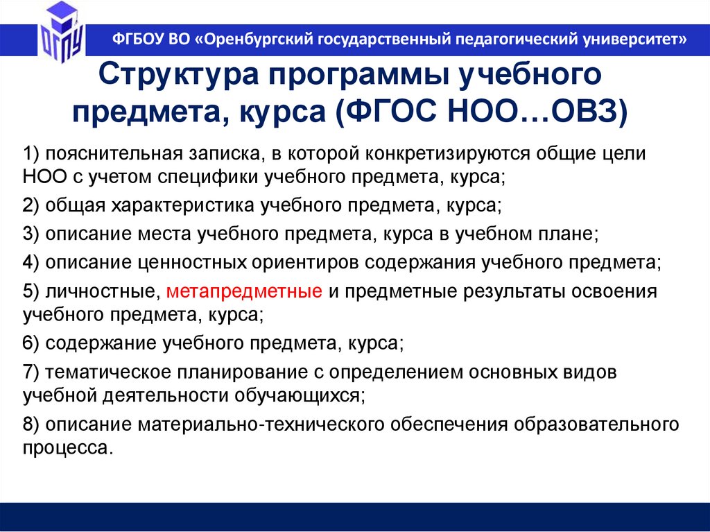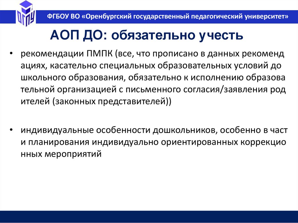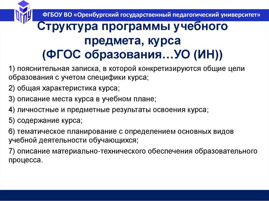 ФГБОУ ВО «Оренбургский государственный педагогический университет»Федеральная основная образовательная
