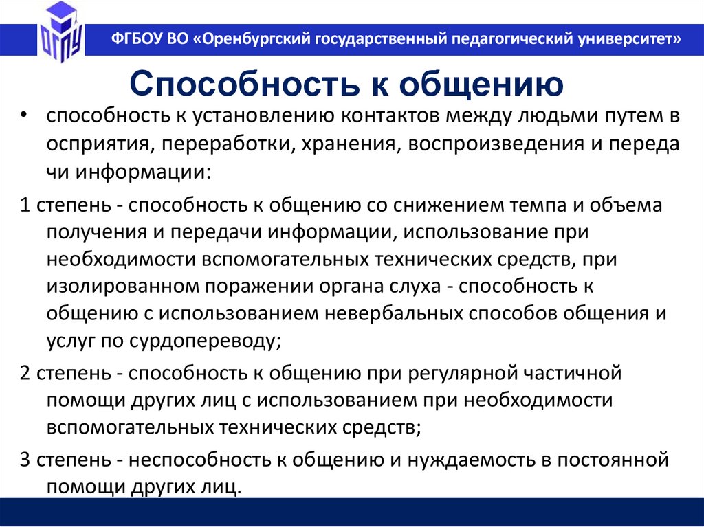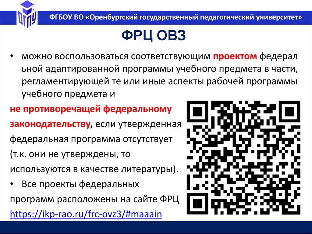 ФГБОУ ВО «Оренбургский государственный педагогический университет»ФРЦ ОВЗ