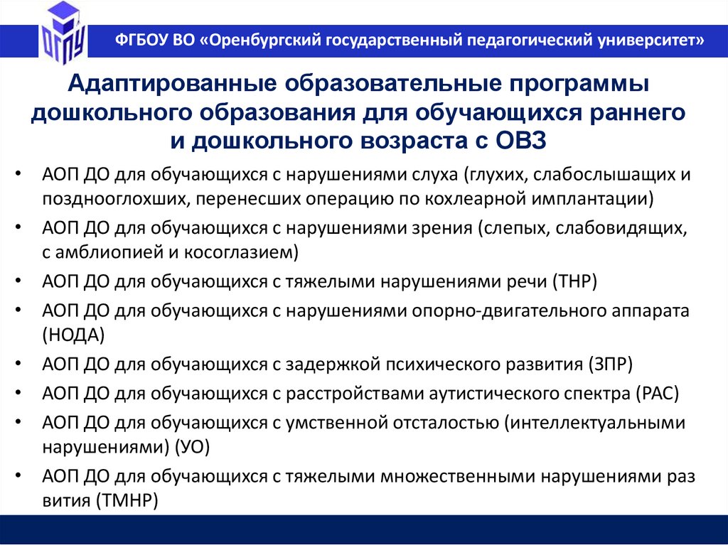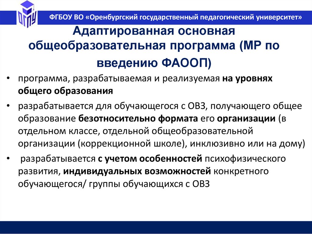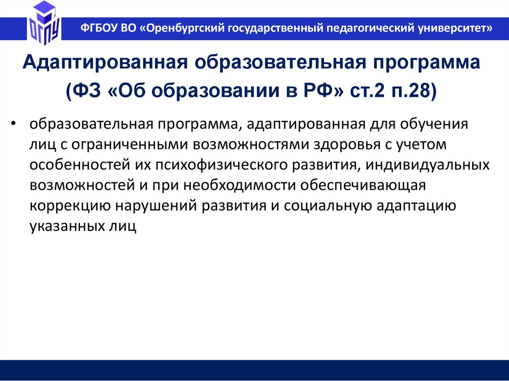 ФГБОУ ВО «Оренбургский государственный педагогический университет»Адаптированная образовательная программа