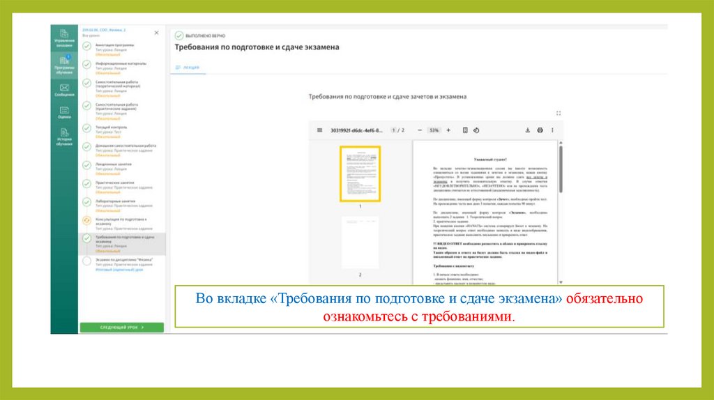 Во вкладке «Требования по подготовке и сдаче экзамена» обязательноознакомьтесь с требованиями.