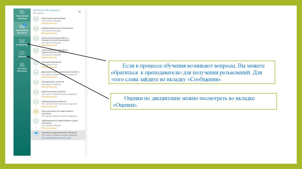 Если в процессе обучения возникают вопросы, Вы можетеобратиться к преподавателю для получения разъяснений. Для