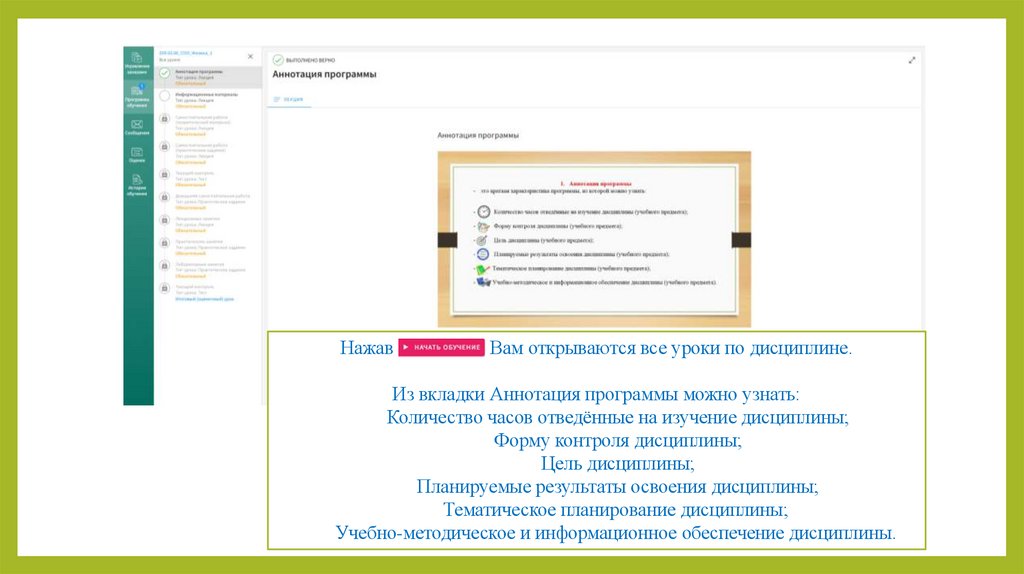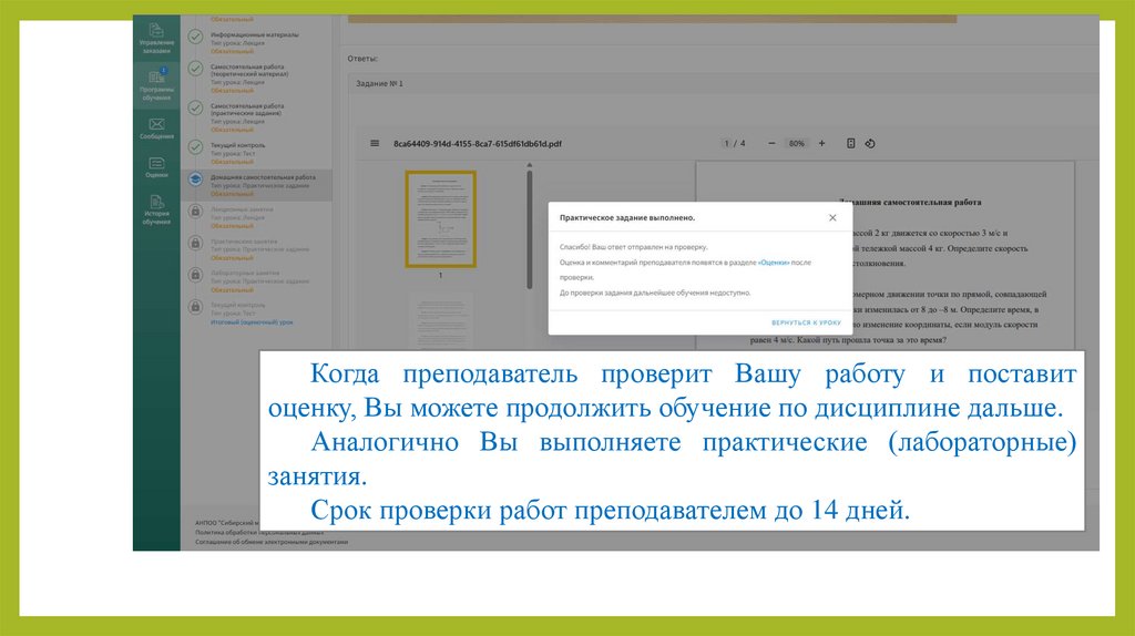 Когда преподаватель проверит Вашу работу и поставитоценку, Вы можете продолжить обучение по дисциплине дальше.