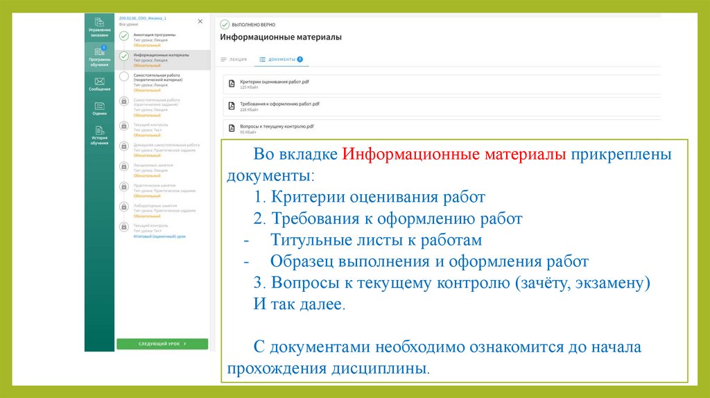 Во вкладке Информационные материалы прикрепленыдокументы: