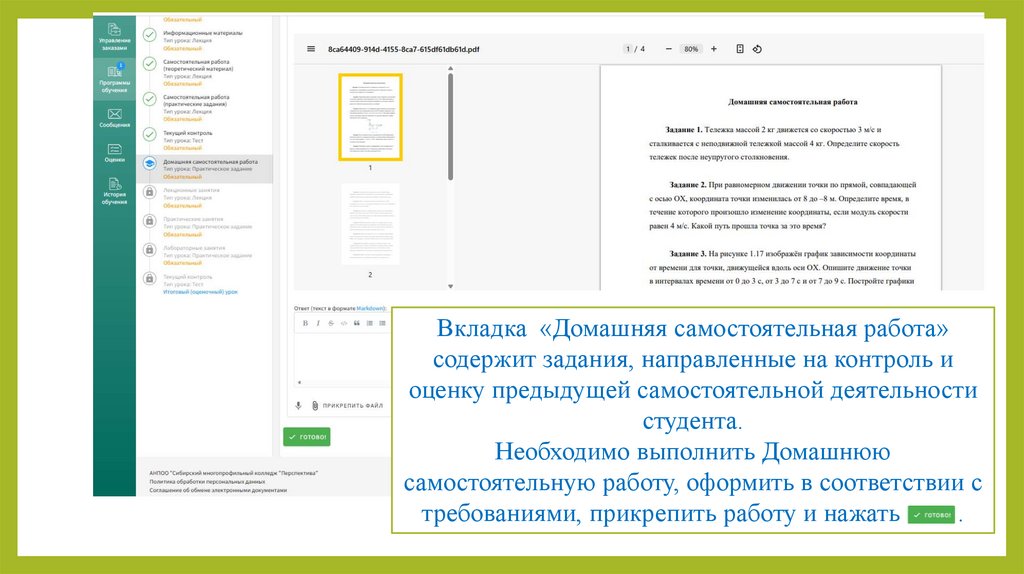 Вкладка «Домашняя самостоятельная работа»содержит задания, направленные на контроль и
