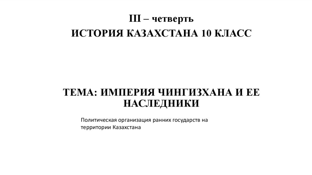 III – четвертьИСТОРИЯ КАЗАХСТАНА 10 КЛАСС